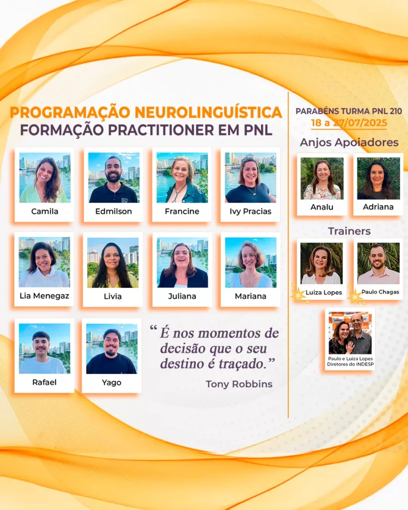 Que alegria indescritível testemunhar a formatura da turma 210 de PNL do Indesp! Foram 10 dias intensos de muita entrega, aprendizado e, acima de tudo, transformação.